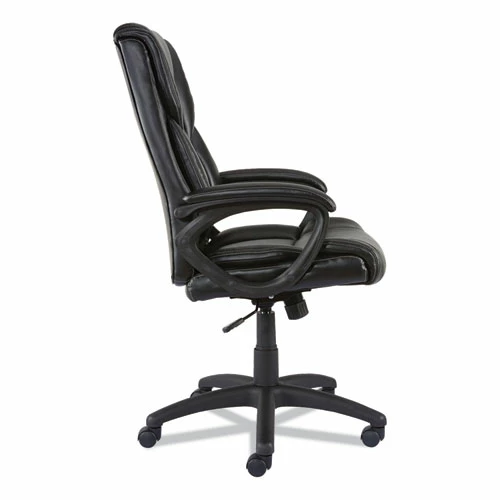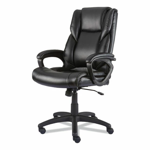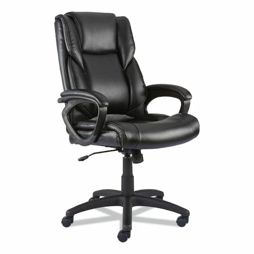 Comfort and style combine when you add this faux leather chair to your workspace. The extended back, lumbar support, and plush padding enhance comfort. The soft, Luxura™, leather-look upholstery is easy-to-clean and adds a modern touch. Fully customizable pneumatic seat height adjustment lets you find the right position for your desk and screen height. Recline at the perfect angle for the task at hand with built-in tilt tension and lock. Some assembly required.