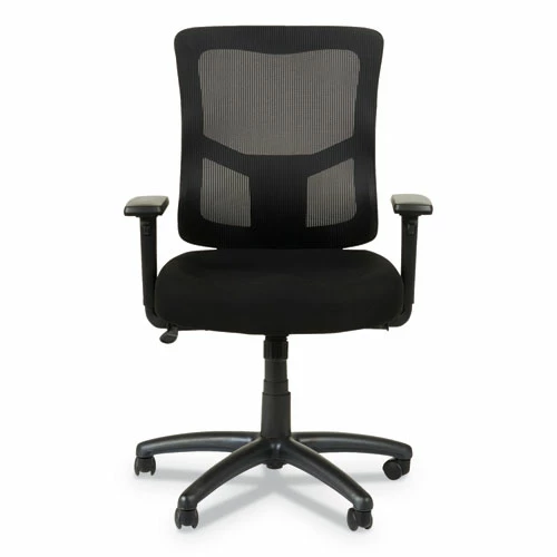Having the right office chair is one of the most important aspects of a productive workplace, considering the amount of time the average office worker spends sitting. Alera® Elusion® II Series Mesh Mid-Back Swivel/Tilt Chair with Adjustable Arms goes beyond the basics. Four-way adjustable arms move up and down, as well as pivot in and out, to help you find the optimal position for your arms to rest. The breathable mesh back keeps you cool, even when your office is warm. Contoured molded foam fabric seat provides a comfortable place to sit. Ergonomically designed chair frame encourages proper posture. Height adjustable ratchet back gives you the lumbar support you need throughout your workday.