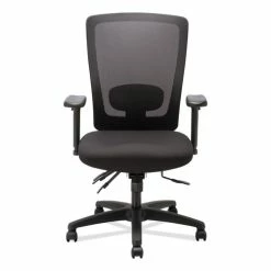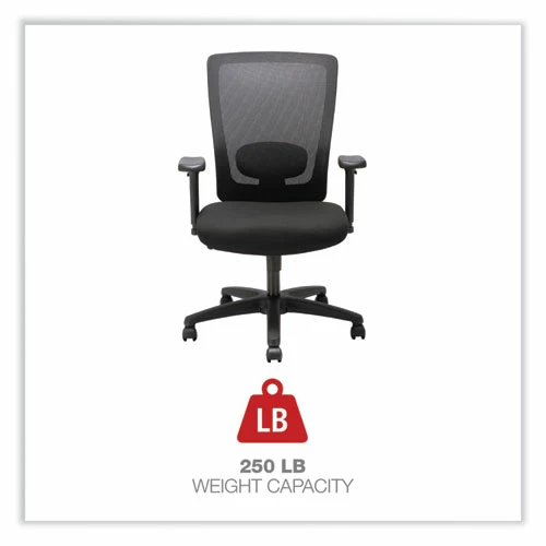 This high-back chair features a crisp visual design and a variety of ergonomic adjustments at an irresistible price. Mesh back offers breathable support and conforms to the natural curvature of the spine. Lumbar adjustment adapts to support the lower back and can be adjusted to satisfy a variety of different users. Adjustable-height and width arms move up and down, as well as, toward and away from the body to adapt to various body sizes. Asynchronous control offers a wide range of movement, assists in spinal alignment and distributes users weight evenly. 360-degree swivel provides easy of movement in any direction. Supports up to 250 lbs.