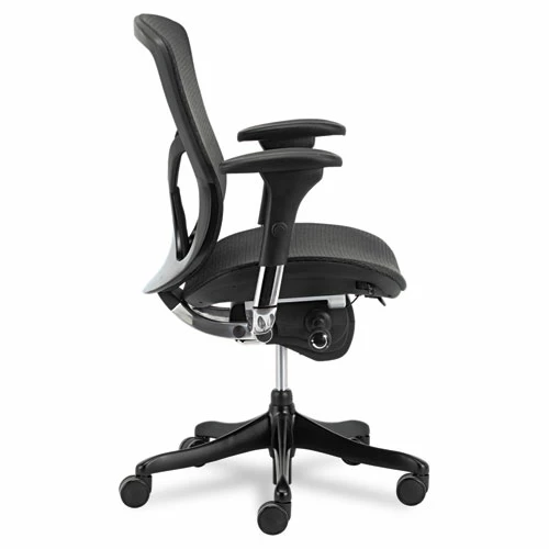 A high-tech aesthetic chair with premium ergonomic features. Synchro-Tilt mechanism offers customized support. Breathable elastic polyester mesh seat and back. Waterfall seat reduces pressure at the back of your knees for improved circulation. Easy reach seat levers for height and back adjustment. Soft arms are adjustable up and down front to back and at angles. Five-star base with casters for easy mobility.