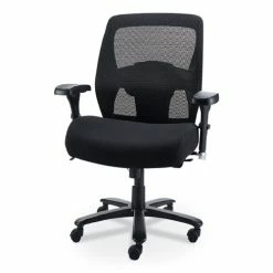 Sit comfortably in a fully adjustable, classic chair that’s specifically designed for the big and tall user. Constructed with a thickly padded seat and breathable mesh back. The tilt-adjustable lumbar support gently cradles your back and locks into position for customized comfort. Pneumatic seat height adjustment and width and height-adjustable arms allow you to individualize support for your back, arms, and shoulders. Five casters on a wide, stable base allows mobility.