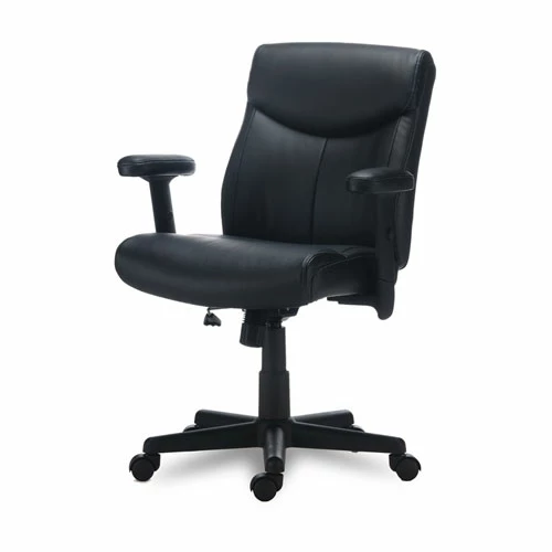 Stay comfortable through with this stylish, manager’s chair. Designed for luxurious comfort, it supports your head, neck, back, and shoulders with plush cushioning and lumbar support. Height and width-adjustable arms for the perfect set-up. Further customize your working position with adjustable seat height and locking tilt tension. The faux leather seat has a modern touch and is easy-to-clean. Mobile design features a stable, five-star base with rolling casters which work on carpet or hard floors. Supports up to 275 lbs. Assembly required.