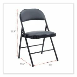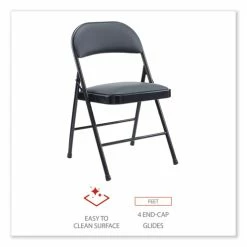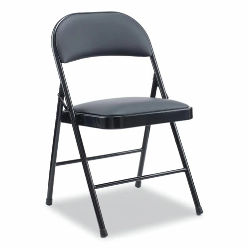 Alera® Alera PU Padded Folding Chair, Supports Up To 250 Lb, Black Seat, Black Back, Black Base, 4/Carton