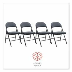 Add extra seating to any space with these folding chairs. Made with a cushioned, faux leather seat and back that’s provides an upscale look and is easy-to-clean. Durable, metal base is designed to withstand heavy use and includes covered feet to keep floors free of scuff and scratches. Folding design makes them ideal for storage and transport when not in use. Armless chair is mobile and versatile for all occasions, indoor or outdoor gatherings. Each pack includes four chairs. Supports up to 250 lbs. No assembly.