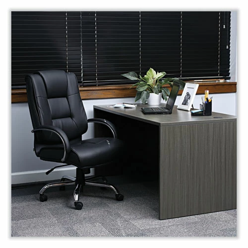 Alera® Alera Ravino Big/Tall High-Back Bonded Leather Chair, Headrest, Supports 450 Lb, 20.07″ To 23.74″ Seat, Black, Chrome Base