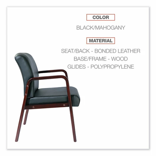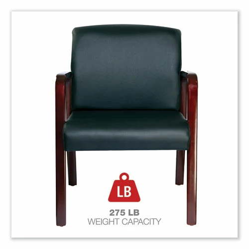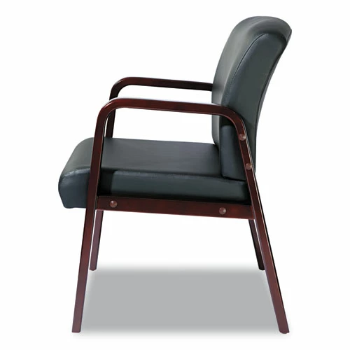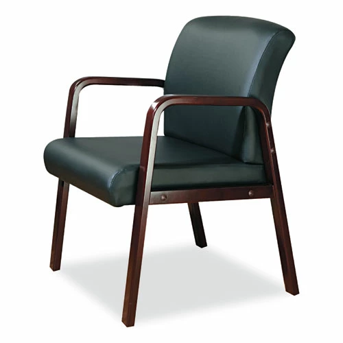 Give guests and visitors a comfortable place to wait with this bonded leather guest chair. Constructed with soft touch, leather upholstery that’s easy-to-clean. Built with a stylish and durable wood frame for longevity. Includes leveling guides to help compensate for uneven floors. The modern style, low maintenance materials, and economical pricing make it ideal for lobbies, waiting rooms, or additional office seating.