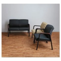 Give guests and visitors a comfortable place to wait with this bonded leather guest chair. Constructed with soft touch, leather upholstery that’s easy-to-clean. Built with a stylish and durable wood frame for longevity. Includes leveling guides to help compensate for uneven floors. The modern style, low maintenance materials, and economical pricing make it ideal for lobbies, waiting rooms, or additional office seating.