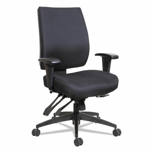 Designed to last in the busy office with smart ergonomic features for optimal comfort. Multifunction mechanism allows back angle adjustment relative to seat and adjustable tilt (free floating or infinite locking positions). Waterfall seat edge reduces pressure at the back of knees. Impact-resistant molded plastic shell. Padded slant T-arms are height- and width-adjustable. Durable fabric upholstery is tested for longevity and resists fading. Five-star base with casters for easy mobility.