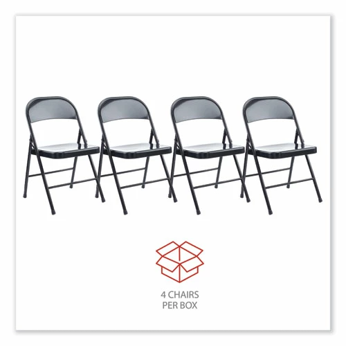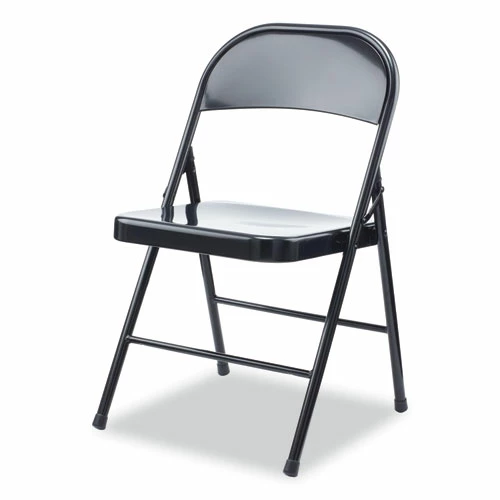 Alera® Armless Steel Folding Chair, Supports Up To 275 Lb, Black Seat, Black Back, Black Base, 4/Carton