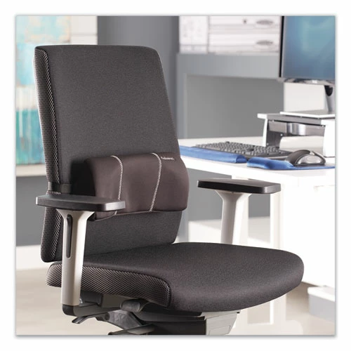 Fellowes Lumbar Back Support features a low-profile design for maximum lumbar support. Works to support the lower back for comfort during extended periods of sitting. High-density foam promotes neutral posture while the adjustable strap holds the lumbar back support in place. The soft brushed cover can be removed for easy cleaning. Perfect for use in the office, home office, school, or wherever you need a little extra back support.