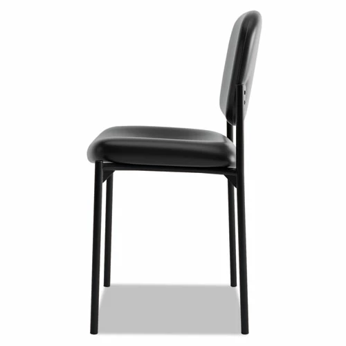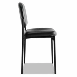 HON® VL606 Stacking Guest Chair Without Arms, Bonded Leather Upholstery, 21.25″ X 21″ X 32.75″, Black Seat, Black Back, Black Base