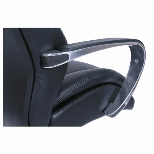 Premium La-Z-Boy® Commercial ComfortCore® with gel memory foam seat construction for added comfort and heat dispersal. Knee tilt seat plate with four point locking tilt positions and seat slider. Upholstered in commercial grade black bonded leather. Aluminum arms with PU arm pads. Five-star aluminum base with casters for easy mobility. Supports up to 400 lbs.
