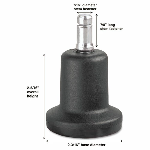Converts chairs with casters to stationary chairs. Stem fasteners designed to fit most metal base furniture. Weight rating: 110 lbs per glide.