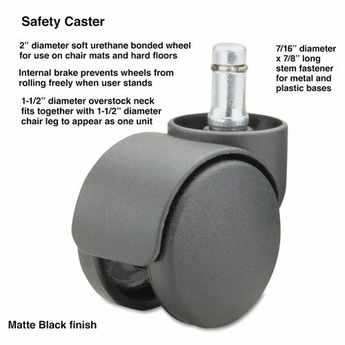Master Caster® Safety Casters, Oversized Neck, Grip Ring Type B Stem, 2″ Soft Polyurethane Wheel, Matte Black, 5/Set