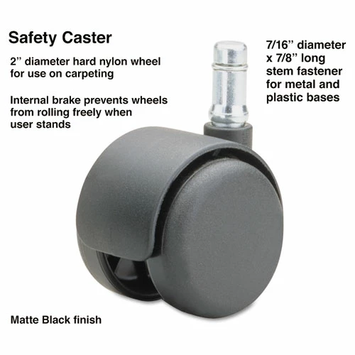 Master Caster® Safety Casters, Standard Neck, Grip Ring Type B Stem, 2″ Hard Nylon Wheel, Matte Black, 5/Set