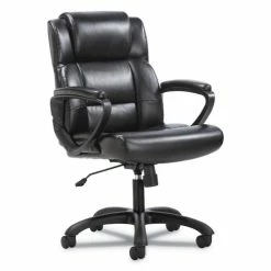 The office chair features luxurious sofThread leather for an upscale look and feel, making it a smart and stylish solution for any application. It offers simple and intuitive controls such as pneumatic seat height adjustment, 360-degree swivel, tilt tension and tilt lock for added customizability and comfort. The contemporary tapered arms add to the modern appeal. The comfort, stylish look, and price point of this chair make it a perfect addition to the office whether at work or at home.