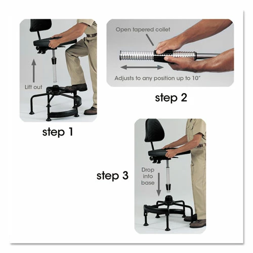 Ideal for installations with multiple applications and height ranges. For 24/7, intensive-use. Adjusts 8″ up or down pneumatically while seated and an additional 10″ manually with patented Wave Tube Extension. Oversized seat and back are covered with microcellular, self-skinning polyurethane foam. Backrest adjusts 3″ in height and depth with use of ergo knob and backrest tilts 22 . Seat tilts 10° with paddle lever controls. Large base ensures stability. Wide-angled footrest provides secure footring and ergonomically correct leg position.